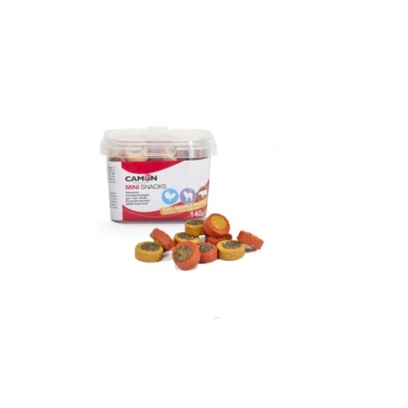 Λιχουδιές σε μικρά κομμάτια κατάλληλα για επιβράβευση. Παρασκευασμένα από 70% φρέσκο νωπό κρέας, χωρίς γλουτένη, χωρίς τεχνητά χρώματα και αρώματα, απαλλαγμένα από GMO και τρανς λιπαρά.